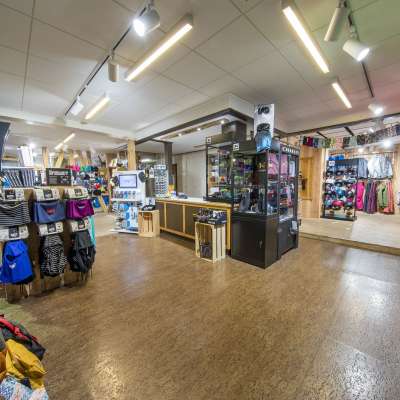 Der Backdoor Shop bietet alles rund um die Themen Snowboarden, Skifahren oder Trailrunning. Neben dem Verkauf kann man im Backdoor Shop auch verschiedene Winter- und Sommerausrüstungen mieten – unter anderem Skitouringmaterial und Splitboards.