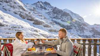 Bergstation des Eiger Express, Ausgangspunkt für die Fahrt aufs Jungfraujoch: Das ist der Eigergletscher. Er verbindet das Wander- und Skigebiet am Fuss der Eigernordwand mit der faszinierenden Welt aus Eis und Schnee des Jungfraujochs. Wer im Winter mit Ski oder Snowboard unterwegs ist, nimmt hier eine der vielen Abfahrtsrouten. Und wer im Sommer Wanderlust verspürt, hat hier die Wahl zwischen alpinen Wander- und sanft abfallenden Fusswegen. Geniesse einen Aperitif und die einzigartige Aussicht auf das Bergpanorama auf der Terrasse vom Restaurant Eigergletscher.