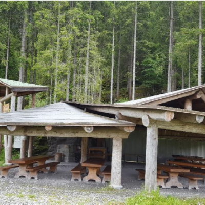 In bester Lage am Waldrand und in der Nähe einer offenen Wiese ist diesen Grillplatz vom Parkplatz Gletscherschlucht leicht erreichbar. Kann mit einem Besuch der Schlucht oder einer Wanderung entlang des Flusses kombiniert werden Jedes Jahr im Juni findet entlang der Erlenpromenade das Land Art Festival statt. Die Schutzhütte ist mit Tischen und bänken ausgestattet. Ein grosser Grill, Aufhänger für Kessel und Brennholz sowie Strom sind vorhanden.