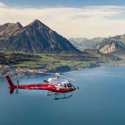 Fliege über das Lütschental, Wengen, Männlichen und Kleine Scheidegg zu den hohen Gipfeln von Eiger, Mönch und Jungfrau. Näher an der Eigernordwand sind nur Bergsteiger - ein beeindruckender Anblick aus dem Helikopter. Vorbei am Top of Europe Jungfraujoch mit seiner imposanten Sphinx und auf dem Rückweg kannst du die sanfte Landschaft mit den tiefblauen Seen von Interlaken geniessen. Helikopterfliegen im Hochgebirge ist faszinierend und eine der besten Möglichkeiten, die Berner Alpen zu erkunden, abgesehen davon, dass es sicher und bequem ist.