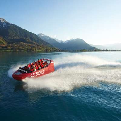 Die rasante Bootsfahrt geht von unserem Jet-Port zu den imposanten Giessbachfällen, welche über 14 Kaskaden 500 Meter in den See stürzen. Unsere Kapitäne kennen den See wie aus der Westentasche und nehmen sich viel Zeit dir Informationen zur Umgebung und der Region zu vermitteln.