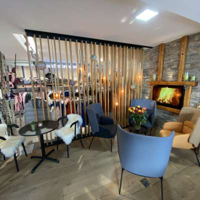 Die Lounge – inspiriert vom Geist der Zeit in der das Fliegen und Reisen einen echten Boom erlebte – ist schlicht aber bequem, einladend gemütlich und gleichzeitig zweckmässig. Mit skandinavischer Klarheit, natürlichen Materialien und abgestimmt im Farbkonzept ist die Lounge perfekt ins Gesamtkonzept des Ladengeschäftes integriert.
