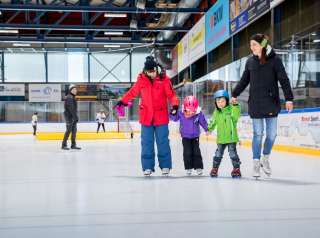 Die nötige Ausrüstung wird im Sportzentrum vermietet. Die Eishalle lässt sich auch für Trainingslager oder andere Veranstaltungen reservieren.