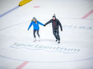Die Kunsteisbahn im Sportzentrum lädt zum Schlittschuhlaufen oder Eishockeyspielen – und dies von Ende Juli bis Ende April.