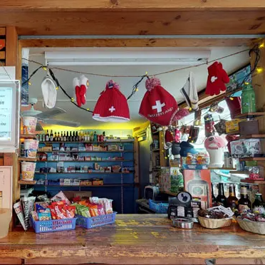 Souvenirs, Postkarten, Snacks, warme oder kühle Getränke