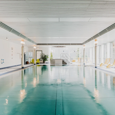 Lasse dich einfach mal eine Runde treiben oder tauche ab in unserem modernen Hallenbad mit dem 16x6m grossen Edelstahlbecken bei einer Wassertemperatur von 29°C.